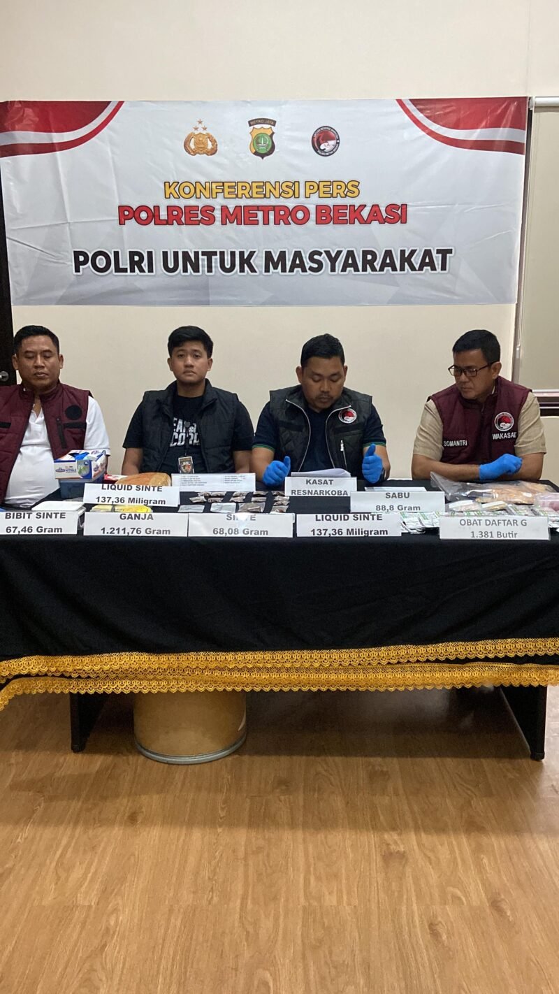 Kapolres Metro Bekasi KBP Mustofa, S.I.K., M.H. menjelaskan pengungkapan kasus ini berawal dari laporan masyarakat terkait adanya aktivitas transaksi narkoba di sejumlah titik. Tim Opsnal Satresnarkoba kemudian melakukan penyelidikan intensif hingga akhirnya berhasil mengamankan para pelaku di beberapa lokasi berbeda.